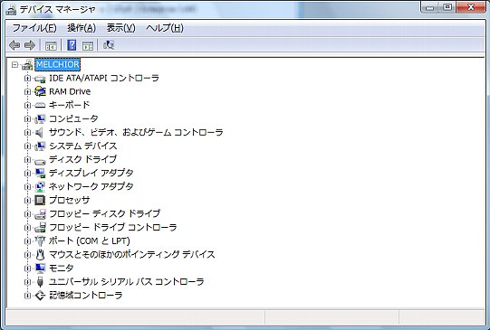 (1) デバイスマネージャのメニューから、[操作]→[レガシハードウェアの追加]を選択します。